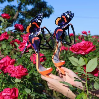 “Butterflies never cease to amaze me. It’s not just their endlessly stunning wing colours I find inspiring but also the process of patience and struggles to transform from caterpillar to beautiful butterfly. It, therefore, gives me great pleasure to support, for a second year running, Butterfly Conservation, particularly in their work monitoring butterfly and moth populations. This year I am honouring two species whose populations are recorded by the charity’s conservation team: the Red Admiral and Clouded Yellow, both of which have given me incredible inspiration for two new Chiara designs.” – Sophia Webster X