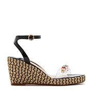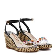 Make a statement in our black espadrille mid wedge finished with a rainbow gem embellished vinyl front strap.