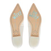 Beautiful soft ivory flat finished with a silver embroidered Butterfly detail. This shoe says "Wifey for Lifey" on the sole.