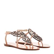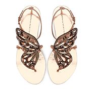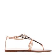 Stylish rose gold leather flat sandal finished with snake print studded cut out butterfly detail.